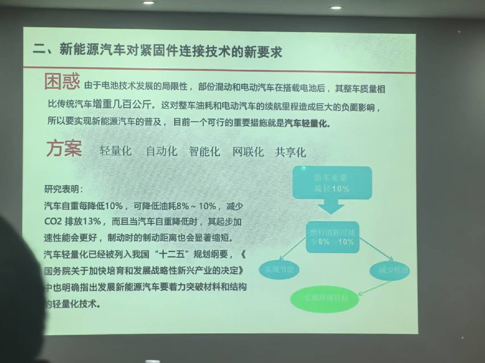 2025年7月3日公司王总应邀参加了在江苏省南京市举行的新能源汽车紧固件研讨会。江苏宁欣汽车零部件有限公司近年来在新能源汽车紧固件开发方面成果显著,公司同业内头部企业配套汽车电池包用热熔流钻螺钉、压铆螺母、拉铆螺母、高压防拆卸螺钉、电池包中部挂载套筒等。公司大量配套高压电池包装配用紧固件、驱动电机和变速系